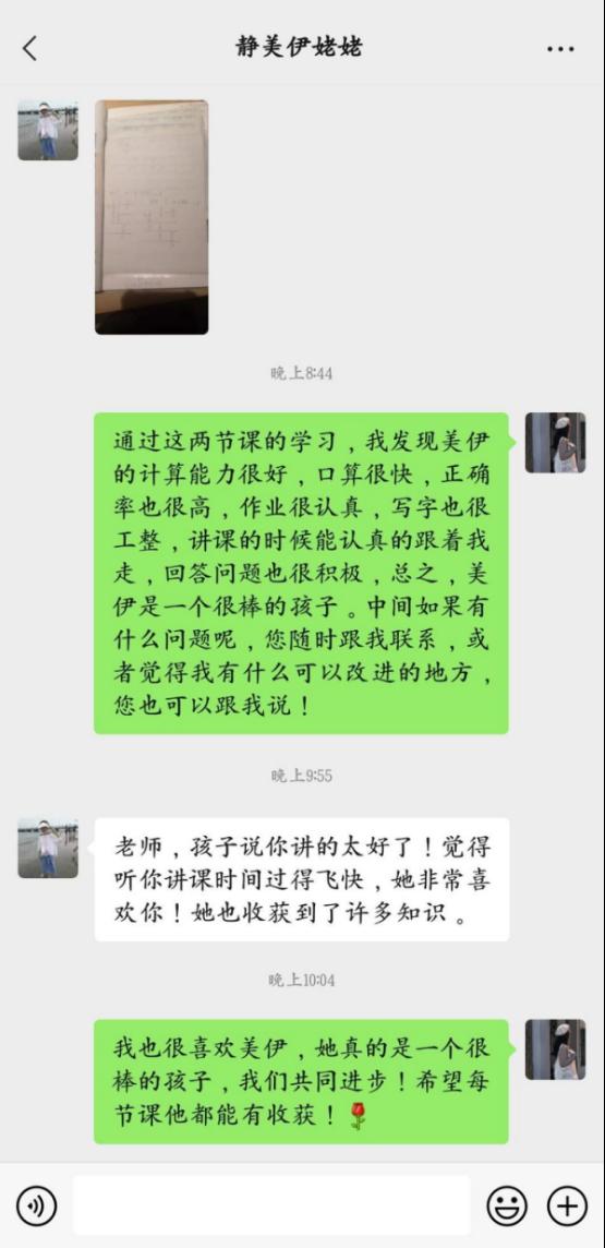 疫情当前,师院青年学子有召必应,行动在前,积极参与此次志愿服务活动。益数志愿队的志愿者主要由数学与计算科学学院教师党员、数学与应用数学专业师范生和部分学生党员组成。同学们利用自己的专业优势为社区居民子女和医护工作人员的子女进行心理疏导与学习辅导,采用钉钉智能软件进行“线上一对一”的模式进行志愿辅导。授课期间,志愿者们发挥专业优势,采用灵活多样、生动有趣的教学方式教学,与学生进行积极有效的互动交流,认真倾听、回答学生提出的问题,努力保证课堂的高效。课下,志愿者们还通过微信与学生或者家长沟通、反馈,跟进学生的学习情况,了解学生的学习生活。目前已有200余名志愿者踊跃报名参与本次志愿服务活动,并且已经和一线抗疫子女顺利对接,每天进行着线上辅导交流。
