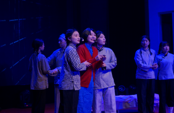 活动中,音乐系的师生们精彩演绎了《你是一面旗》、《红梅赞》、《多想对你说》、《红星闪闪》、《红星照我去战斗》等多首耳熟能详的经典曲目,一首首富含时代印记的红色经典作品,伴随着师生讲述的红军小战士潘冬子打土豪分田地的故事、共产党员江姐和众狱友在渣滓洞监狱绣红旗的感人事迹、革命烈士黎明前血与火的考验以及为革命牺牲的壮烈场面,以及李大钊先生“铁肩担道义,妙手著文章”的博大胸怀和“挽救民族、振奋国群”的坚定信念,回顾了党在危难中奋起、于战火中涅槃,始终同人民风雨同舟、生死与共,从胜利走向胜利的伟大历程,深刻感悟中国共产党带领中华民族在谋幸福、谋复兴奋进历程中的辉煌成就和丰富精神内涵。尤其是音乐系师生创作、改编的歌曲《逐梦新征程》、舞蹈《心声》、评腔剧《少年李大钊》、音乐情景剧《绣红旗》、古筝《山丹丹开花红艳艳》等作品,更是用中国经典的传统音乐与当代文化相结合的方式,通过歌曲、器乐演奏、舞蹈、音乐剧等多种文艺形式讲述中国共产党的百年进程,表达了师生对党的深厚情感。活动现场,歌声、乐声、掌声相互交织,大家或拍掌应和,或轻声跟唱,台上台下频频互动。百名师生大合唱《入党誓词》更是将主题教育活动推向了高潮。