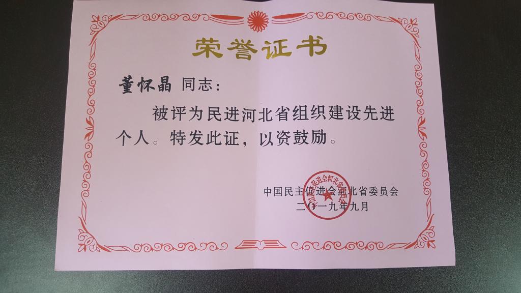 近日,德赢官网民进二支部和美术系董怀晶老师被评为民进河北省委组织建设先进基层组织和先进个人。