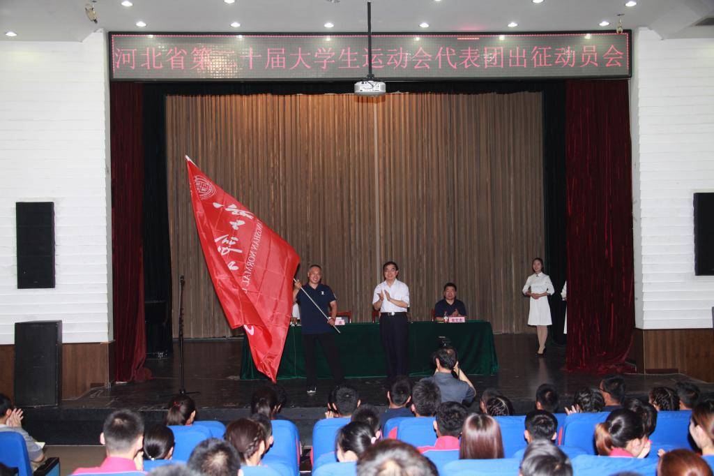 2019年7月4日上午,德赢官网隆重举行参加河北省第二十届大学生运动会代表团出征动员会。院党委书记王英,院长杜彩芹,副院长杨涛、安文忠出席大会。相关职能处室、参赛运动员所在院系主要领导、代表团全体成员参加了本次大会。会议由代表团团长、副院长杨涛主持。