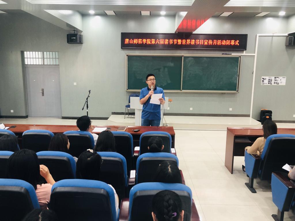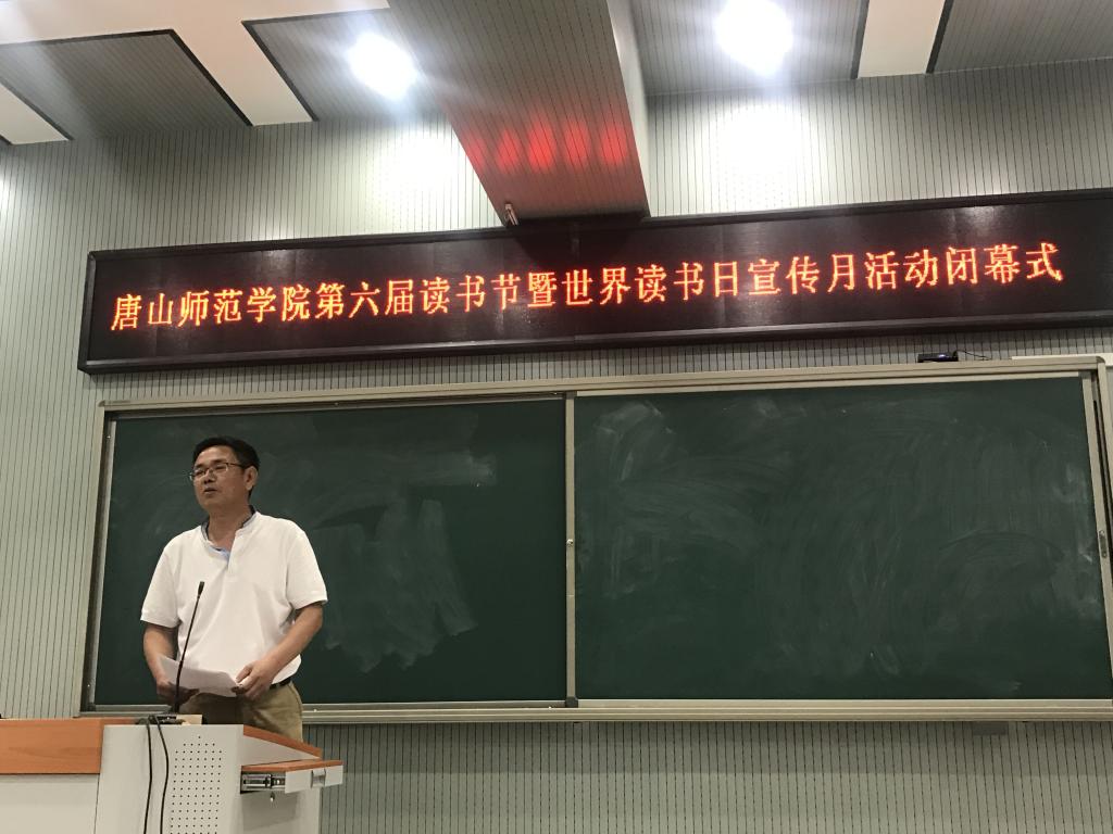 图书馆馆长李增元介绍了本届读书节“书语心空,墨香永存”征文大赛、“我是唐师朗读人”朗读大赛、“诵读经典,演绎名著”名著演绎大赛等各项活动的开展情况,并指出读书节的闭幕并不是读书活动的结束,而是读书新起点的开始,读书节所培养的人文精神、科学精神、创新精神,始终在传承和发扬。社科部党总支书记王学增宣读了本届读书节系列活动的获奖名单,并向获奖同学表示祝贺。获奖代表王欣媛同学发言,分享了她在读书节活动中的收获与感受。