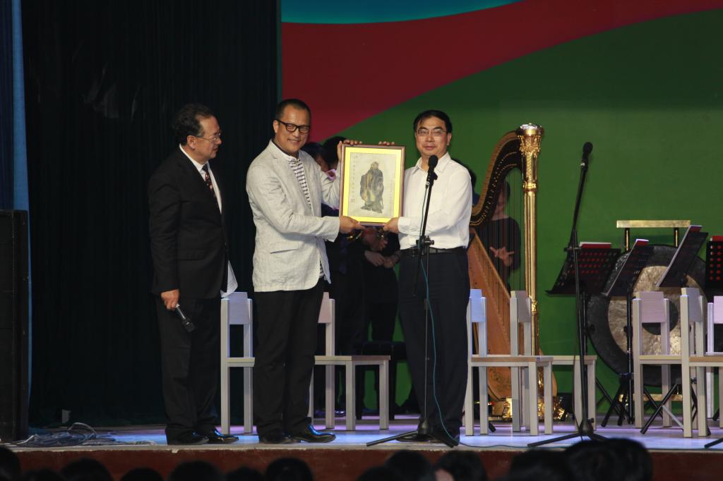 在一段精彩的开场表演后,孙立军副院长代表学校致欢迎辞,他首先向艺术家们表示热烈欢迎,并希望同学们秉承“沉下心思,放开眼界”的学风,认真欣赏歌剧艺术,在高雅文化的熏陶下,不断提升审美修养,提高精神境界,促进全面发展。随后,王英书记向中央歌剧院艺术家代表赠送礼物。