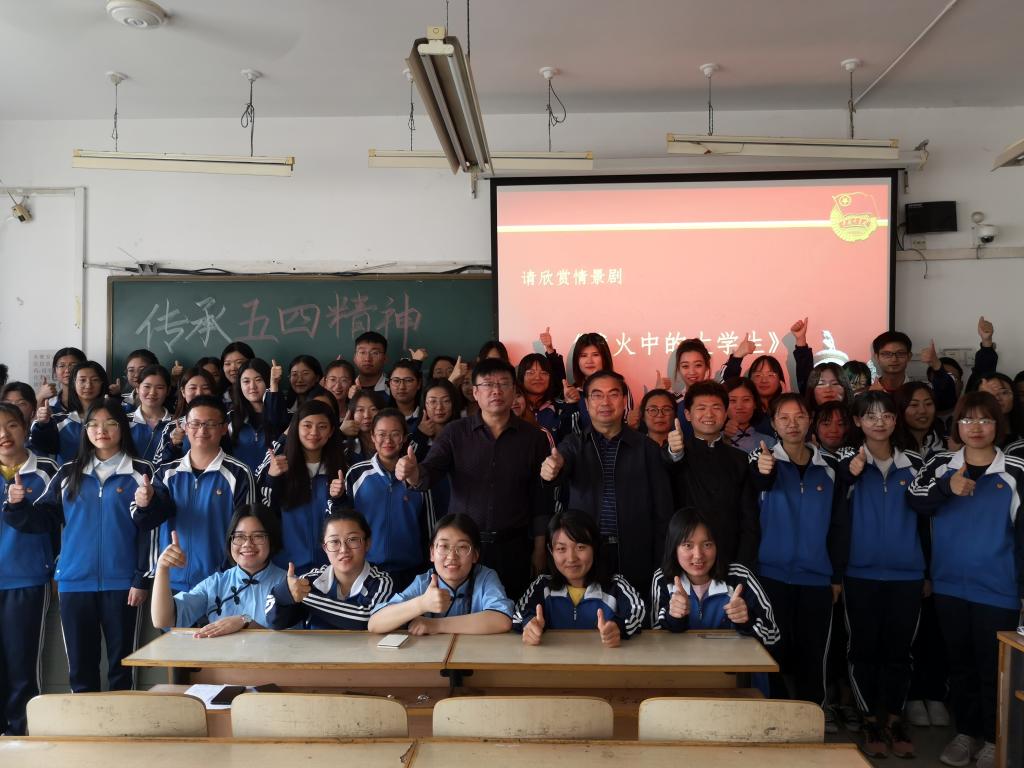 2019年5月14日,德赢官网党委书记王英、副院长孙立军在团委书记刘继祥的陪同下分别走访了化学系、美术系和社会科学部学生团支部,亲自参与学生主题团日活动,与学生交流理想信念,共话“五四”精神。