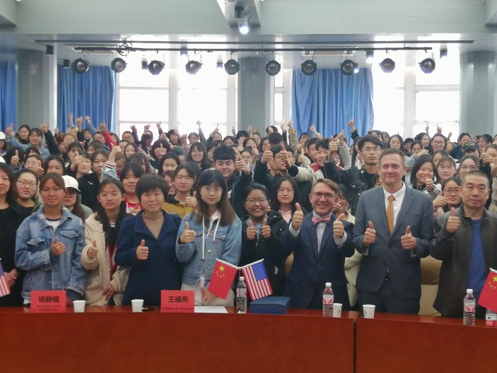 在两校签署了友好合作协议后,唐山市政协副主席、市科技局局长王福燕致辞,对两校表示祝贺,并希望这次友好合作能为我市教育领域的发展与进步起到积极的推动作用,共同推进中美高校之间的国际合作与发展。