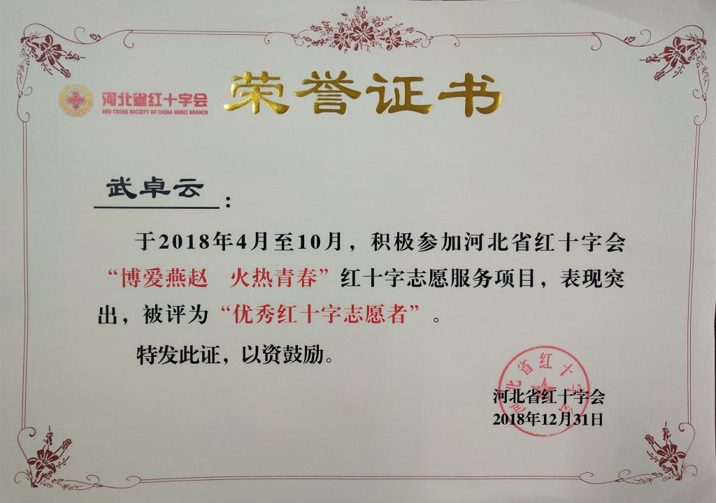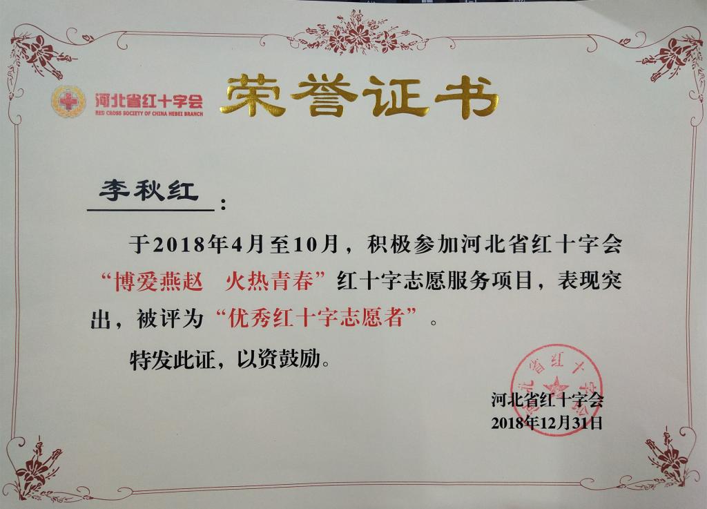 近日,河北省红十字会发布《关于“博爱燕赵 火热青春”高校红十字志愿服务项目优秀组织和优秀志愿者评选结果的通知》(冀红业字【2018】46号),德赢官网红十字志愿服务队获评“博爱燕赵 火热青春”红十字志愿服务优秀组织,德赢官网中文系16级汉语言文学专业李秋红和16级历史文化与法学系武卓云两名同学获评“博爱燕赵 火热青春”红十字志愿服务优秀志愿者。