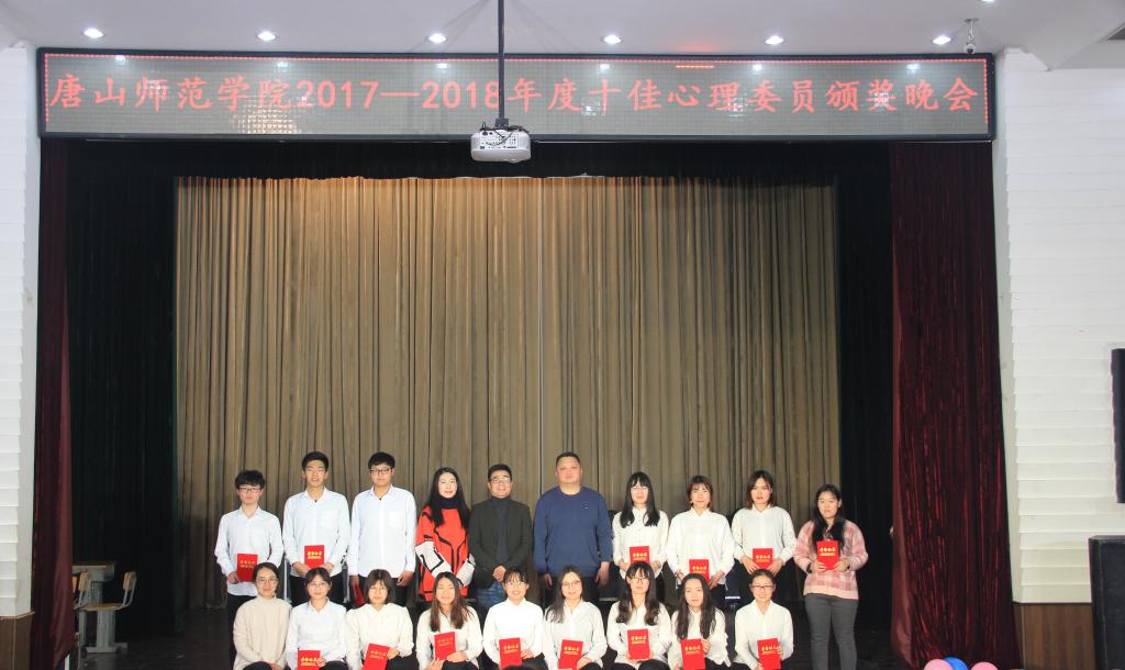 2018年12月25日晚,由德赢官网学生处主办的2017-2018年度“十佳心理委员”颁奖典礼在音乐报告厅圆满落幕,学生处孟祥昕处长、中文系党总支副书记张琮及在校师生200余人出席了本次活动。