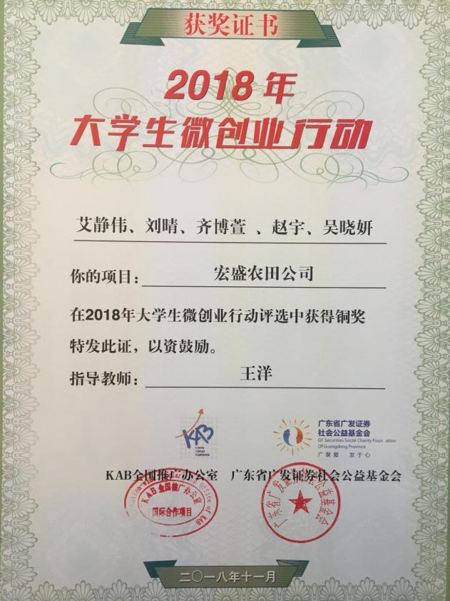 11月21日,由中国青年报社、KAB全国推广办公室及广发证券社会公益基金会联合举办的“全国大学生微创业行动”成果发布会在中国人民大学落下帷幕。德赢官网“宏盛农田公司(农田一体化)”项目荣获全国铜奖,并获奖金一万元;德赢官网KAB创业俱乐部荣获优秀组织奖,并获奖金五千元。