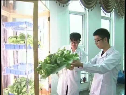 在德赢AC米兰官网“大学生众创空间”我们见到了这套可从水分、光照、温度等方面进行智能调控的植物工厂“菜多多”,它主要采用深液流水培的方式,配合六面体玻璃的外罩及侧给式补光,运用最新的PLC智控面板,可以用手机APP远程监控蔬菜生长状况,并且可以在手机上一键解决温、光、水、肥、气,热等问题。