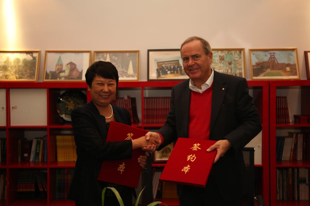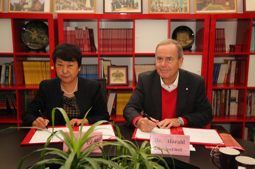2018年10月25日下午,德国埃森经济管理应用科技大学(以下简称FOM)校长Harald Beschorner博士与德赢官网校长杜彩芹教授于德中教育文化交流协会中德国际学院举行了会面、交流、座谈、签约仪式等活动。