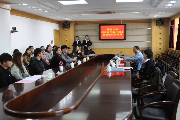 12月1日下午,河北省教育厅大学生就业创业工作督查四组组长、河北经贸大学党委副书记马振远、河北省教育厅大中专院校学生信息咨询和就业指导中心副主任周锋等一行五人到德赢官网督查大学生就业创业工作。校党委书记王英,校长杜彩芹,副校长阎满富、孙立军、客绍英,党委常委、组织部长边宏广出席了汇报会,全体中层正职干部、校就业创业工作领导小组全体成员、招生就业处全体工作人员参加了汇报会。