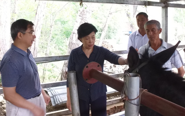 随后,王英书记、边宏广常委陪同田向利部长走进村民王杰的驴舍中视察。看着即将出栏的驴,田向利部长反复询问养驴的具体情况,50多岁的村民王杰喜笑颜开地介绍说,自己现在养着70头驴,未来计划养100头,让日子越过越好。王英书记则详细介绍驻村工作组在产业扶贫方面所制定的养驴产业发展战略。目前全村养殖规模已达230头,1000平米的专业养殖圈舍已破图动工,建成后,预计可直接带动30户贫困户脱贫出列。
