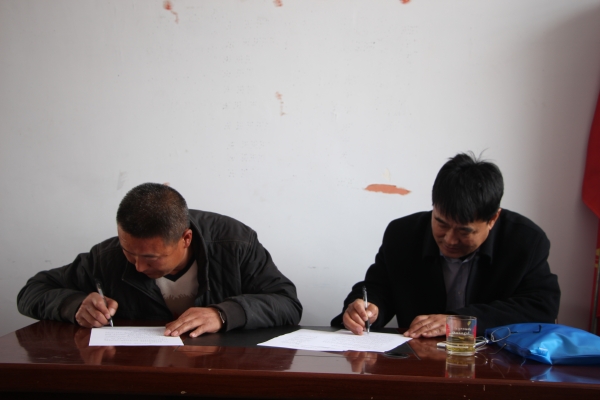 刘正理研究员与村党支书李云腾签署小米种植协议