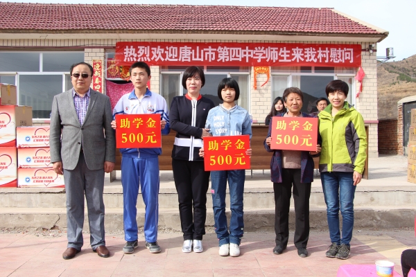 唐山第四中学校长苏丽静、副校长李金庭和团委书记孙怡资助了六合店村