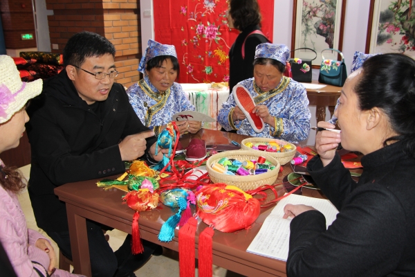工作组与承德上世满绣文化开发有限公司闫桂维经理及六合店村绣娘合影