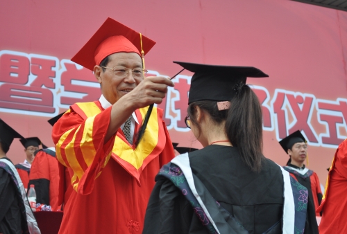 典礼议程结束后,进行了学历学位授予仪式。首先是专科生学历授予仪式,学校领导、各位主礼教授为专科生颁发毕业证书;然后是本科生学位授予仪式,学校领导、各位主礼教授为本科生正冠拨苏,授予学位。学位授予仪式结束后,全体师生起立齐唱《歌唱祖国》。在礼炮震天声中,德赢官网2015届学生毕业典礼暨学位授予仪式至此圆满结束。