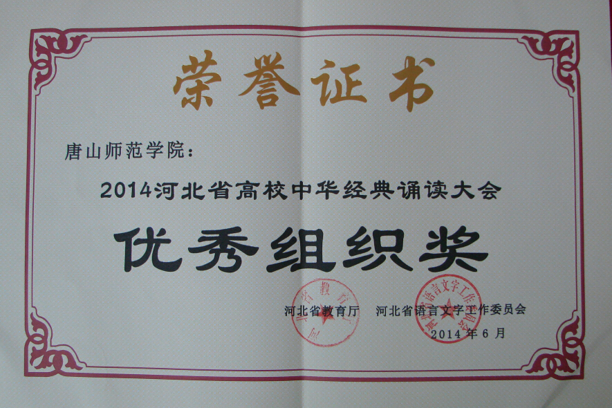 “2014河北省高校中华经典诵读大会”在国家语委语言文字应用培训基地—东北大学秦皇岛分校圆满落下帷幕,德赢官网代表队取得佳绩。